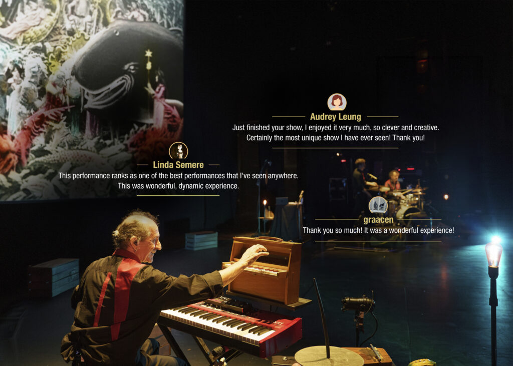 Pianist, composer, improviser and scenographer, Jean-François Alcoléa presents shows imbued with his plural universe, combining music, sound creations, light, still and moving images, street arts, dance, texts and plastic installations.